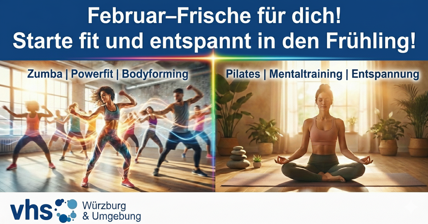 Egal, ob Sie sich richtig auspowern wollen oder einen Anker für mehr innere Ruhe suchen – unser neues Kursprogramm im Februar bietet Ihnen genau die Mischung, die Sie jetzt brauchen. Vom Stadtzentrum bis in den Landkreis: Wir bringen Bewegung direkt vor Ihre Haustür. Entdecken Sie Sportarten, die Spaß machen, und lernen Sie in entspannter Atmosphäre Gleichgesinnte kennen.
