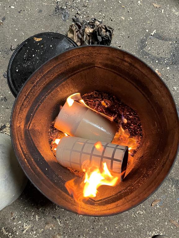 Die japanische Raku-Brenntechnik fasziniert seit Jahrtausenden Menschen auf der ganzen Welt. Das glasierte oder unglasierte, geschrühte Keramikobjekt wird dem Ofen bei etwa 1000 Grad glühend entnommen und in einem Behälter mit organischem Brennstoff (Laub, Stroh, Heu etc.) luftdicht eingebettet. Der entstehende Rauch (Kohlenstoff), der Sauerstoffentzug sowie die im Laub enthaltenen Mineralien wirken stark auf den Tonscherben und die Glasurfarben ein. Die Ergebnisse überraschen mit spannenden Oberflächen. Der Brennverlauf lässt sich beim Rakubrand nur bedingt steuern, sodass jedes Stück ein unnachahmliches Unikat ist. An zwei ganzen Tagen wird modelliert, glasiert und gebrannt. Du brauchst dafür keine Vorerfahrung und kein Equipment mitzubringen. Am ersten Tag gestalten wir die Werke aus Rakuton. Hierbei lernen wir verschiedene Aufbautechniken und Gestaltungsmöglichkeiten von Keramik kennen. Form Farbe und Oberfläche wird hier bewusst angeschaut und bearbeitet. Nach dem ersten Brand, dem Schrühbrand treffen wir uns zum zweiten Mal in der Werkstatt in Böttigheim. Jetzt geht es um die Glasur der gebrannten Werke. Gemeinsam glasieren wir die Werke und beginnen mit dem ersten Brand. Die Rakutonne wird nun auf ca. 1000 Grad erhitzt und wir nehmen die Werkstücke wie oben beschrieben glühend aus dem Ofen. Dieser Prozess des Brennens wird so oft wiederholt, bis wir alle Teile durchgebrannt haben. Dieser Tag ist zeitlich nicht begrenzt. Es empfiehlt sich keine nachfolgenden Termine zu haben, um dem Abschluss des Kurses Raum zu geben und nachwirken zu lassen. Gemeinsam bestaunen wir abschließend unsere Werke. Unsere gemeinsamen Tage werden eine bewusste kreative Auszeit mit viel Gestaltung, mit kleiner Wanderung durch die Trockenhänge Böttigheims (bei Interesse) und Verköstigung mit einem herzhaften Eintopf, Snacks und Tee.